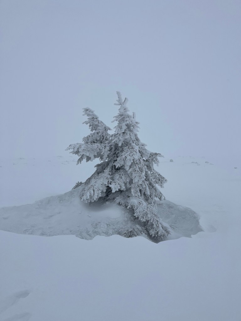 Sprzętowo byłam przygotowana, ale wciąż miałam nadzieję, że wydarzy się cud – że zobaczę bajkowe zimowe krajobrazy. W końcu dla nich chodzę w góry: dla przyrody, zapachu lasu, śpiewu ptaków, szumu wiatru i spektakularnych widoków. Tym razem nie doświadczyłam żadnego z tych elementów. A jednak wciąż chciałam wejść na szczyt.